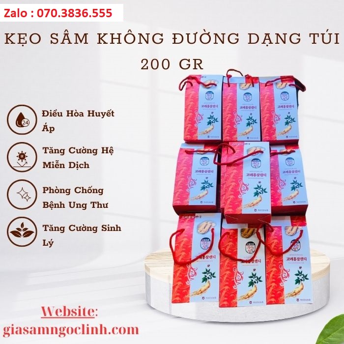 Kẹo Sâm Không Đường Dạng Túi 200 gr thật tuyệt vời ?