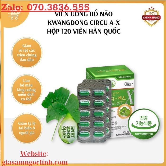 - Tên SP: Viên Uống Bổ Não Kwangdong Circu Hộp 120 Viên